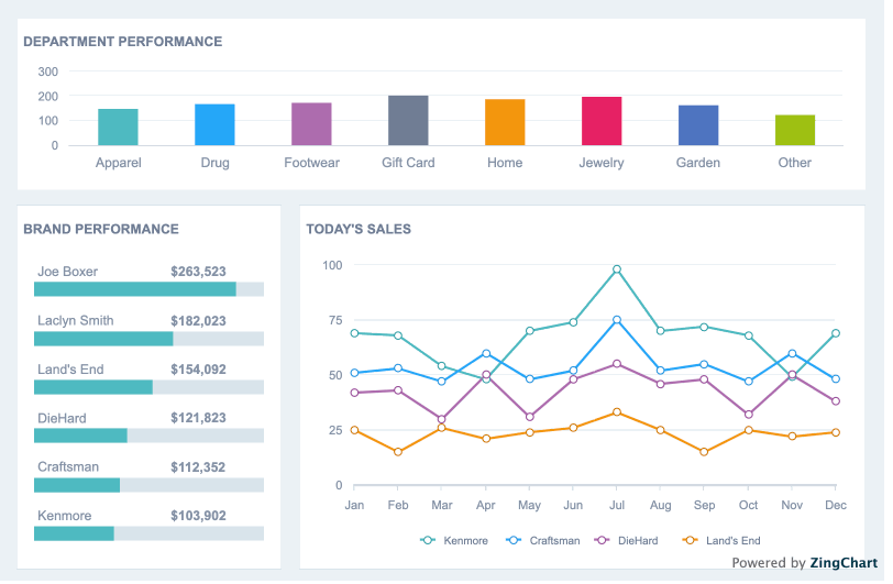 ZingChart is one of the original JavaScript charting libraries, and continues to innovate and improve on its feature set. With over 35 different chart types, a rich API of methods/events to integrate with, and a dedicated support team, ZingChart provides an all-in-one solution for your data visualization needs.